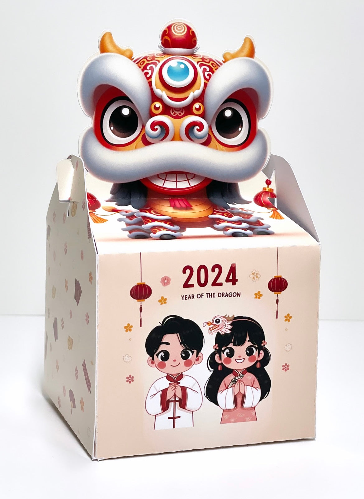 Celebrate Lunar New Year in style with artisan-crafted Year of the Dragon favor boxes. Designed and handmade with care and infused with the spirit of the season, these boxes are a perfect way to share joy and good fortune. Adorned with traditional Lunar New Year motifs and vibrant colors, each box is a miniature masterpiece. Whether gifting sweets, trinkets, or heartfelt wishes, our favor boxes add a touch of cultural charm to your festivities. Make your Lunar New Year celebration memorable with these unique, handmade creations, blending tradition and elegance to express your warmest wishes in every box.